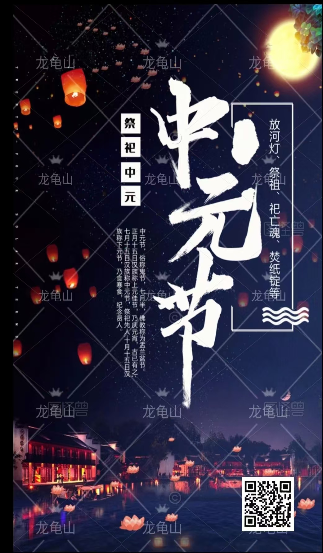 中元節(jié),為道教所稱,佛教稱為盂蘭盆節(jié),民間俗稱鬼節(jié)、七月半,又稱亡人節(jié)、七月半。中元節(jié)是中國傳統(tǒng)祭祀節(jié)日之一,帶有祭祖和感恩的雙重功能,孝文化是其精神內(nèi)核,也是中國傳統(tǒng)民俗節(jié)日中特殊的存在,它是中國人對逝去父母以及親人表達(dá)孝敬、思念的重要節(jié)日。